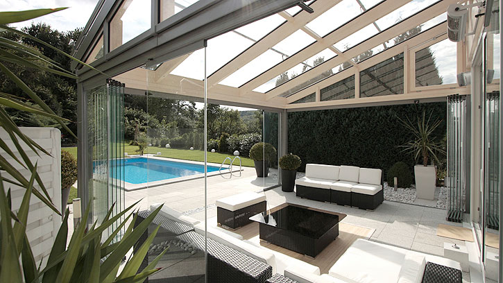La transparencia en su forma más elegante. El sistema de cristal completamente transparente SF 25 se presenta sin marcos verticales, permitiendo así contemplar las maravillosas vistas de la zona exterior incluso cuando está cerrado. De esta forma podrá disfrutar de vistas panorámicas prácticamente sin fronteras, confiriéndole además a su hogar un aspecto un poco más imponente.
